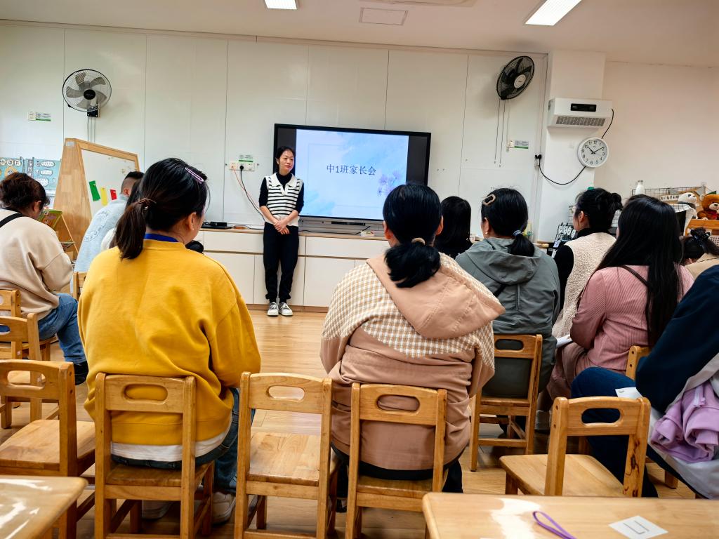 为精准把握中班幼儿发展特点,破解幼儿成长中的实际问题,近日,太仓市娄江幼教中心锦绣新城幼儿园中1班召开了中班上学期班级家长会。本次家长会以 “聚焦中班幼儿发展特点,共促幼儿健康成长” 为主题,围绕幼儿自理能力提升、独立意识增强及同伴交往矛盾等核心议题,教师与家长深入交流,共同制定幼儿发展目标,搭建起家园共育的坚实桥梁。