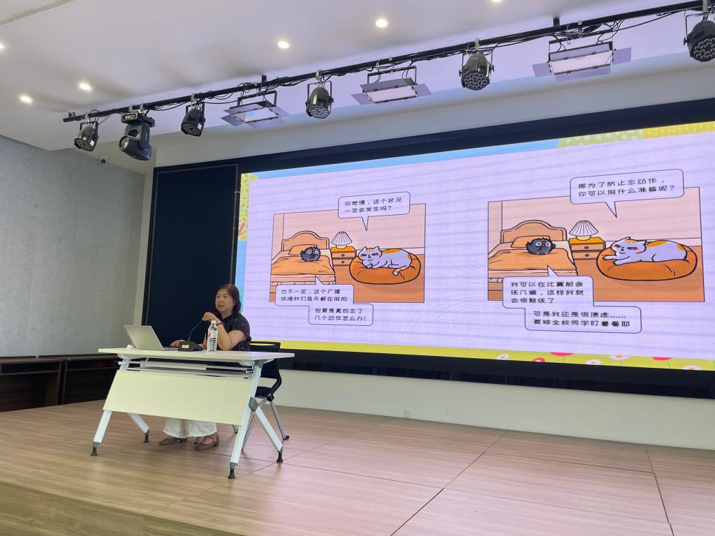 徐老师还特别指出了家庭环境对孩子心理健康的深远影响。她通过一系列幽默风趣的漫画,形象地向老师们展示了如何向家长传递心理健康的重要性。她呼吁,家长们应理性看待孩子成长中的变化,努力成为孩子成长路上有效的引领者和温暖的陪伴者,用智慧和耐心陪伴孩子平稳度过每一个成长过渡期。参与教师纷纷表示,此次讲座内容实用、指导性强,不仅学习到了专业的心理调适技巧,更获得了与家长沟通、共同促进孩子心理健康的有效方法,收获满满。