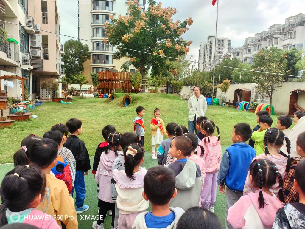 2025年10月22日上午,太仓市高新区娄江幼教中心锦绣新城幼儿园的操场上洋溢着温暖的晨光,大班全体师幼齐聚国旗之下,一场以 “我爱阅读” 为主题的大班国旗下讲话活动如期开展,由大4班夏老师担任主讲,用爽朗的声音传递阅读的美好。