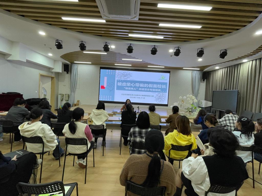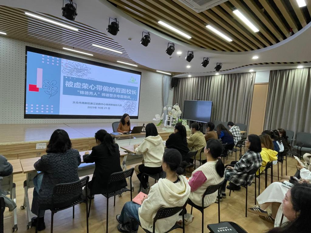 2025 年 10 月 21日,太仓市高新区娄江幼教中心锦绣新城幼儿园 “锦德秀人” 专题培训推出十月师德警示教育学习文章,以 “被虚荣心带偏的假面校长” 为核心案例,为全体教职工敲响师德警钟。