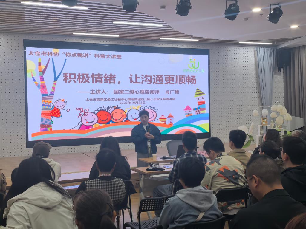 为帮助小班家长掌握科学的亲子沟通技巧,营造积极和谐的家庭育人氛围,2025 年 10 月 15 日,太仓市高新区娄江幼教中心锦绣新城幼儿园特邀请江苏省太仓市家长学校总校校长肖广艳老师,为全体小班家长及空班老师开展了以 “积极情绪,让沟通更顺畅” 为主题的专题讲座,一场兼具专业性与实用性的家庭教育盛宴在此温馨开启。