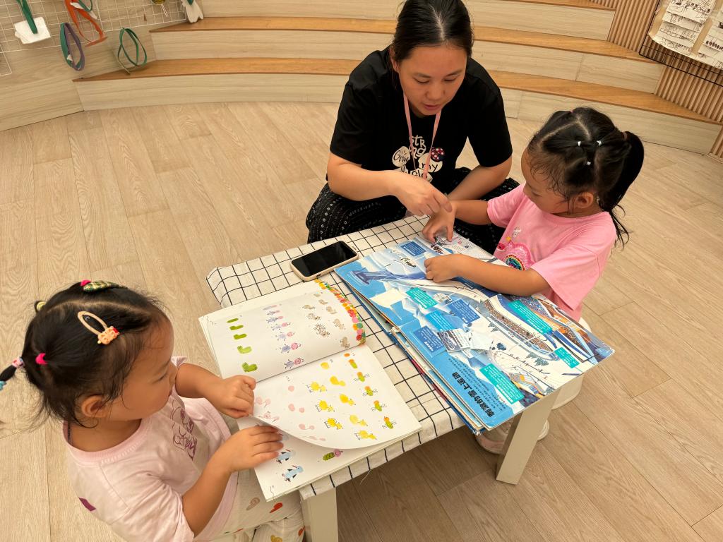 随后的自由阅读环节将活动推向高潮。每个家庭都化身成为一个“阅读小单元”,依偎在角落的沙发或地毯上。爸爸妈妈们用温柔的声音为孩子讲述,孩子们则兴奋地指着图画分享自己的发现。“宝宝,你看,这个勇气你也有对不对?”类似的轻声交流在馆内回荡,浓浓的亲情与书香交织,构成了一幅幅动人的画面。这不仅是阅读,更是高质量的亲子陪伴。