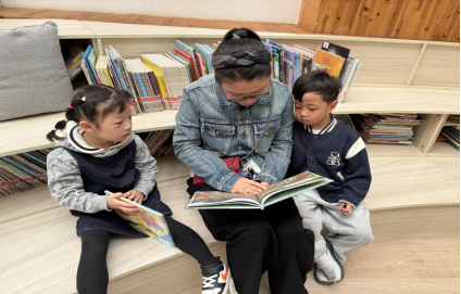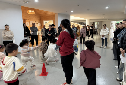 活动在一楼空地拉开帷幕,教师带领幼儿与家长共同参与绘本游戏《大风吹》。孩子们化身为一片片“小树叶”,随着“风”的指令轻轻飘动、奔跑、定格,游戏中融入了颜色识别、指令反应与亲子协作等多重元素,现场气氛热烈而有序。随后,家长与孩子共同进入绘本馆,开展亲子共读环节。孩子们在家长的陪伴下静心阅读,探索书中更多细节,并在教师的引导下学习整理图书、爱护环境,养成良好的阅读习惯。活动最后,教师组织幼儿进行游戏讲评,鼓励他们表达自己在游戏与阅读中的感受与发现,进一步提升语言组织与逻辑思维能力。