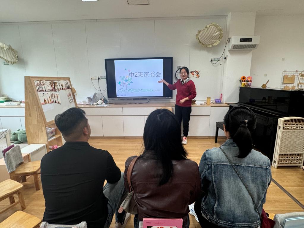 2025年10月30日,太仓市高新区娄江幼教中心锦绣新城幼儿园中2班家委会会议在班级举行,班主任、配班老师与家委会成员齐聚,聚焦亲子阅读展开研讨。